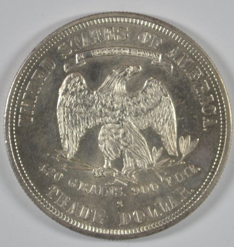 1878-S TRADE DOLLAR, MS-65 WHITE, SUPER LUSTER, NO CONTACT MARKS