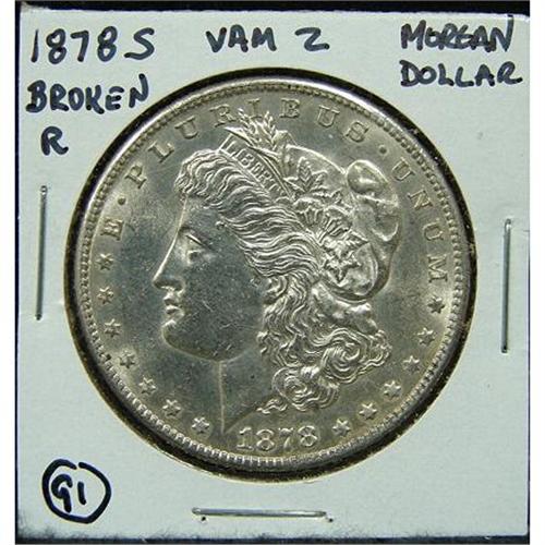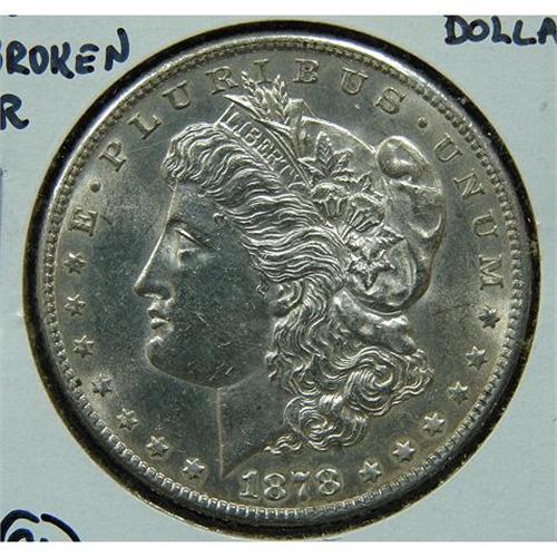 1878-S U.S. MORGAN SILVER DOLLAR. Broken R.