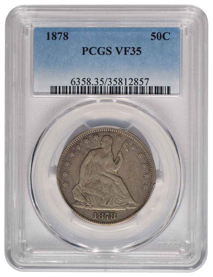 One 1878 Seated Liberty Half Dollar Coin PCGS VF35.