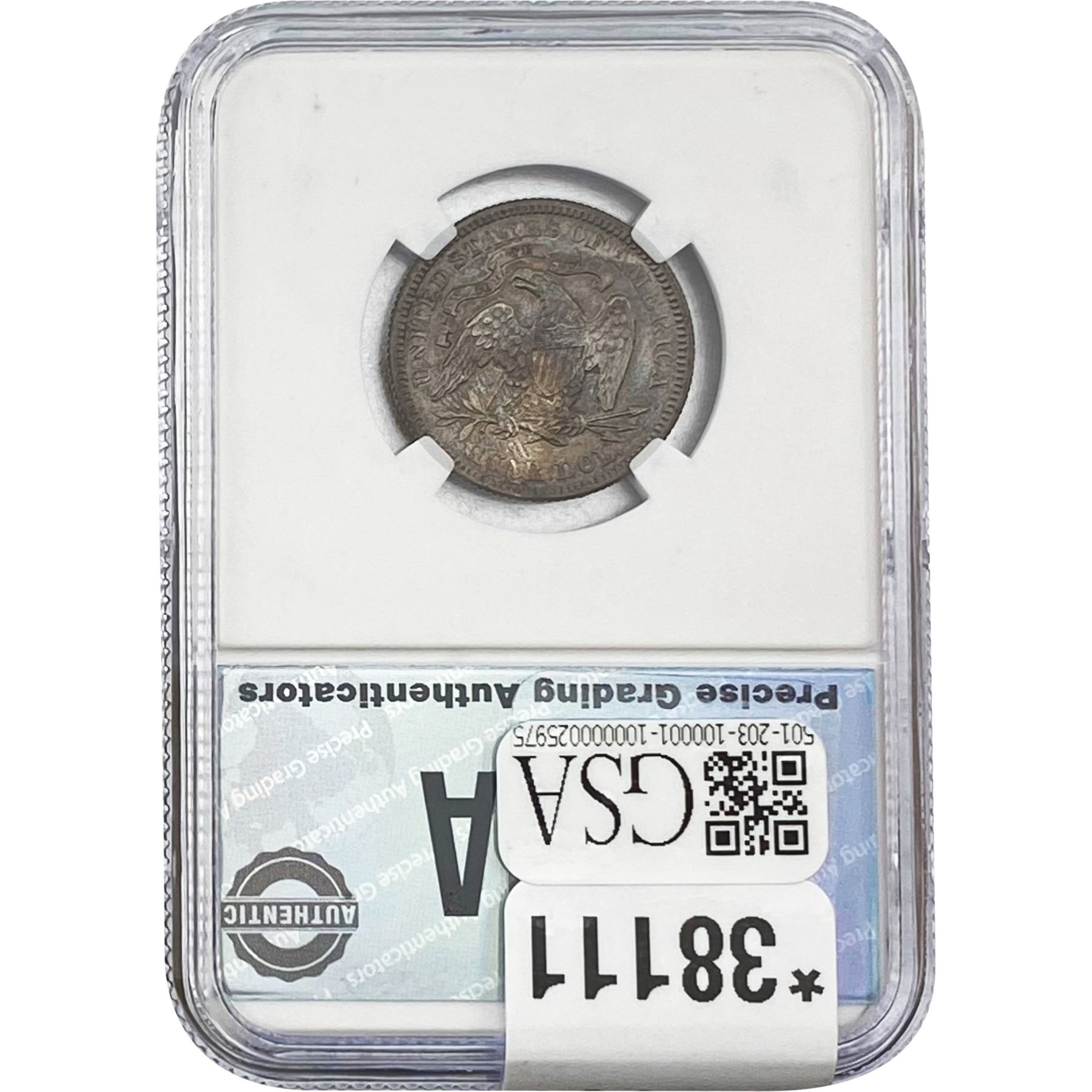 l. All non-certified coins and currency are guaranteed genuine, but are not guaranteed as to grade, since grading is a matter of opinion, an art and not a science, and therefore the description rendered by GSA or any third-party grading service may not agree with the opinion of others (including trained experts), and the same expert may not grade the same item with the same grade at two different times. GSA may, but is not obligated to, express an opinion as to non-certified numismatic items, in GSA’s opinion, or by its employees’ experience and the current interpretation of the American Numismatic Association’s standards as of the date the catalog was prepared. There is no guarantee or warranty expressed or implied that the grading opinions utilized by GSA, if any, will meet the standards of any grading service at any time in the future.