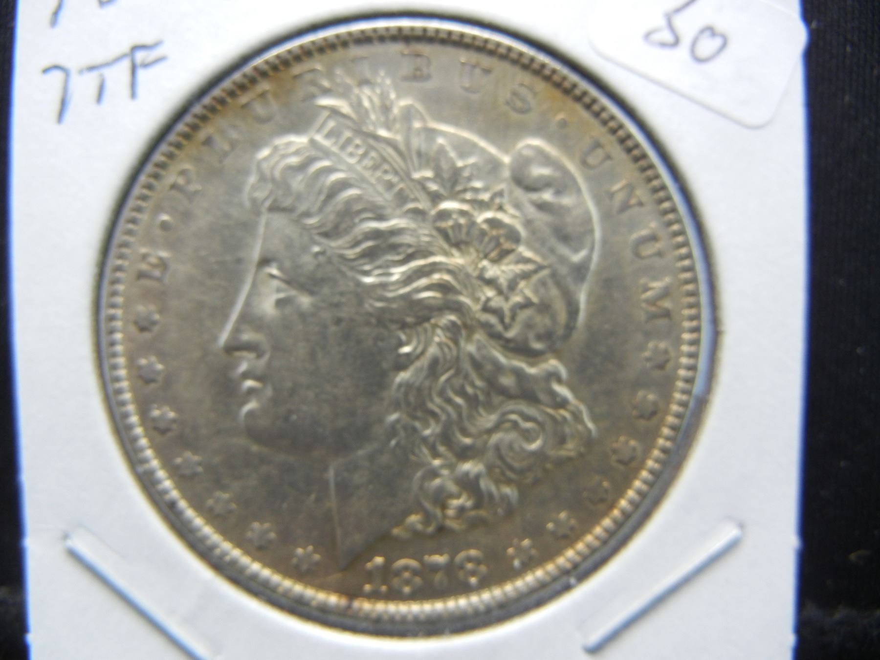 1878 Seven Tail Feather Morgan Dollar.   AU 55.