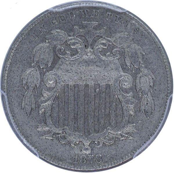 1878 Shield Nickel. PCGS graded Proof Genuine environmental damage - AU detail PCGS # 3832 .