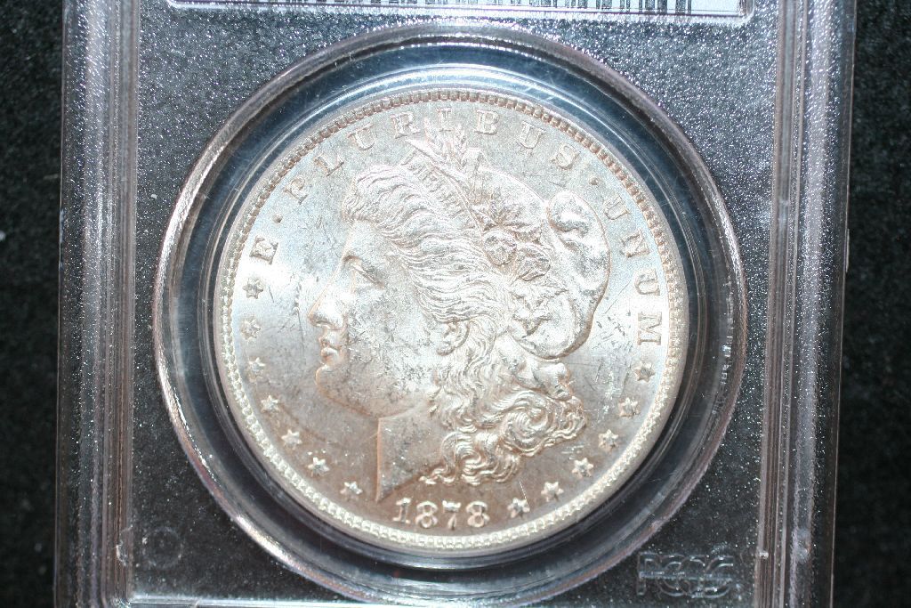1878 Silver Morgan $1; PCGS Graded MS62, 7/8 Tailfeathers; Weak
