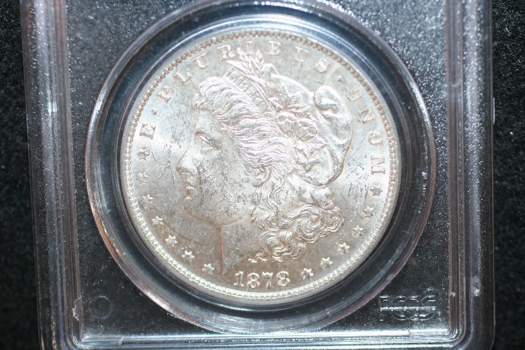 1878 Silver Morgan $1, PCGS Graded MS62 Weak, 7/8 Tailfeathers