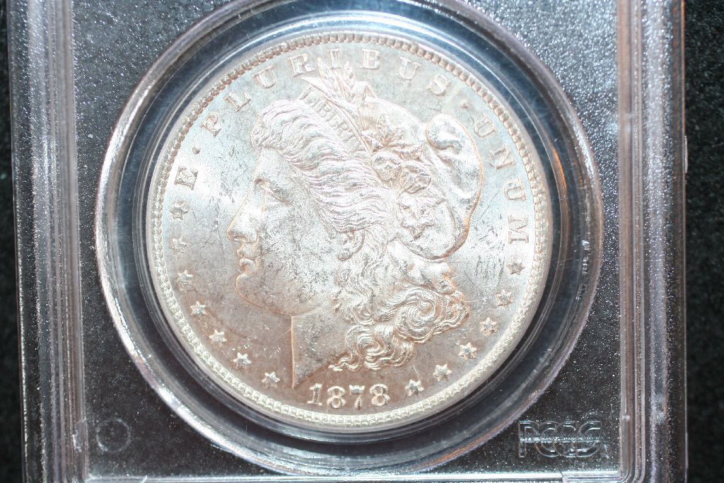 1878 Silver Morgan $1, PCGS Graded MS62, Weak, 7/8 Tailfeathers
