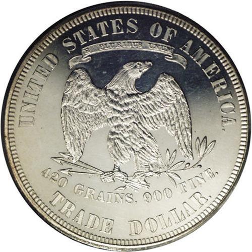 <B>1878<T$1> PR64 PCGS.</B></I> This year marks the first in which the Philadelphia Mint produced only proof Trade dollars. The present near-Gem is a snow-white survivor from an original mintage of just 900 pieces. We can find no overly bothersome hairlines or contact marks, and the definition is expectantly sharp for a specimen striking. <BR><BR><B>Important notice:</B> Heritage usually auctions material at the rate of 200-250 lots per hour. On some occasions eBay Live bid software or the Internet may not be able to keep up with the pace of the auction. We recommend placing a realistic absentee bid now as insurance to avoid disappointment. Occasionally the auctioneer may eliminate or reject an eBay Live bid, and the auctioneer may also reopen a lot after the close of the eBay live bidding (usually because we missed an audience bid), and may reject your bid even if it shows you as the winning bidder. By bidding via eBay Live, you agree that Heritage may award the lot to another bidder at its sole discretion under the circumstances described above or any other reasonable circumstances. Since eBay bids are not shown to us until we open the lot on the floor, we treat those bids just like floor bids. In most cases the floor responds before the eBay bid is presented to us, due to Internet lag time, so for consistency we have made it a policy that floor bids are always considered first over tie eBay live bids. Also please note that all Heritage lots purchased through eBay Live carry a 20% Buyer's Premium. Please make sure you read the Terms and Conditions before you bid. This lot is being auctioned in conjunction with a live floor auction by Heritage Galleries & Auctioneers. All final auction and invoice information will be supplied by Heritage Galleries & Auctioneers, and all other information should be considered preliminary. Lot:2234 <BR><BR><B>Winning Notification and Billing:</B> After the FINAL session in this auction is complete, Heritage will send e-mail and snail mail invoices. This process normally takes several days. All final auction and invoice information will be supplied by Heritage Galleries & Auctioneers, and all other information should be considered preliminary. <BR><BR>This auction will be conducted on a live auction floor and over the Internet through eBay Live. If you choose to place an absentee bid, please take a moment to <font color='#0000ff'><u><a href='http://pages.ebay.com/liveauctions/help/before/laabsentee.html'>learn how eBay Live absentee bidding works</a></u></font><font color='#000000'>