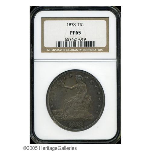 1878 T$1 PR65 NGC. A gorgeous, deeply toned Gem Proof 1878[T$1] PR65 NGC.