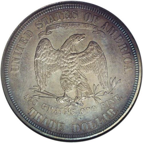 <B>1878 T$1 PR65 NGC.</B></I> A gorgeous, deeply toned Gem Proof example with dark heather and bright blue color blended together on both sides. This is a remarkable example, one of just 900 Proofs struck. Philadelphia was concentrating on producing Morgan Dollar varieties in 1878, thus only produced Trade Dollars in Proof condition. The same would hold true through the end of the series. Census: 39 in 65, 14 finer (11/06).<BR><BR><b>Shipping:</b> Coin/Currency (<a target="_blank" href="http://www.heritageauctions.com/common/shipping.php">view shipping information</a>)