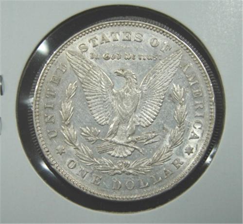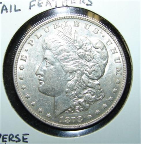 1878 U.S. MORGAN SILVER DOLLAR. 7 tail feathers. Reverse of 78. AU.