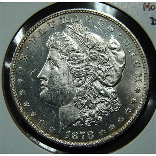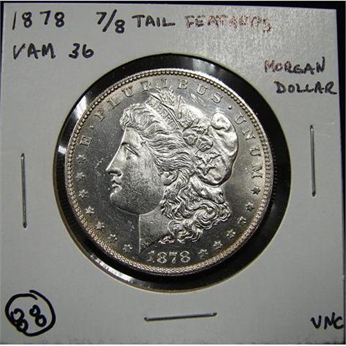 1878 U.S. MORGAN SILVER DOLLAR. Unc. 7/8 tailfeathers. VAM 36.