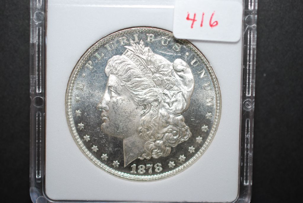 1878 US Silver Morgan $1 With 8 Tailfeathers; MCPCG Graded MS64 PL; EST. $435-1000