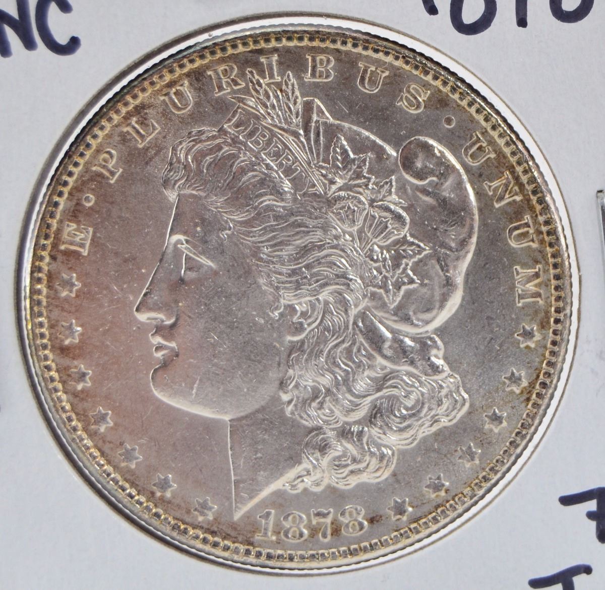 1878 Uncirculated 7 Tail Feather Morgan Silver Dollar, This is the second rarest 1878 Morgan Dollar in the 1878 series