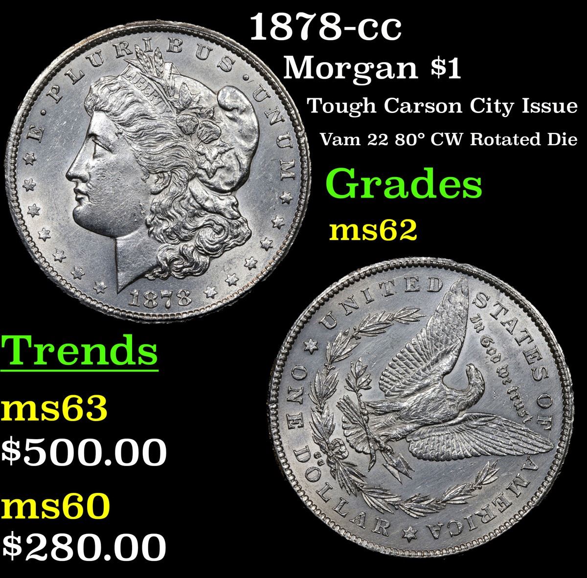 1878-cc Tough Carson City Issue Vam 22 80° CW Rotated Die Morgan Dollar $1 Grades Select Unc.