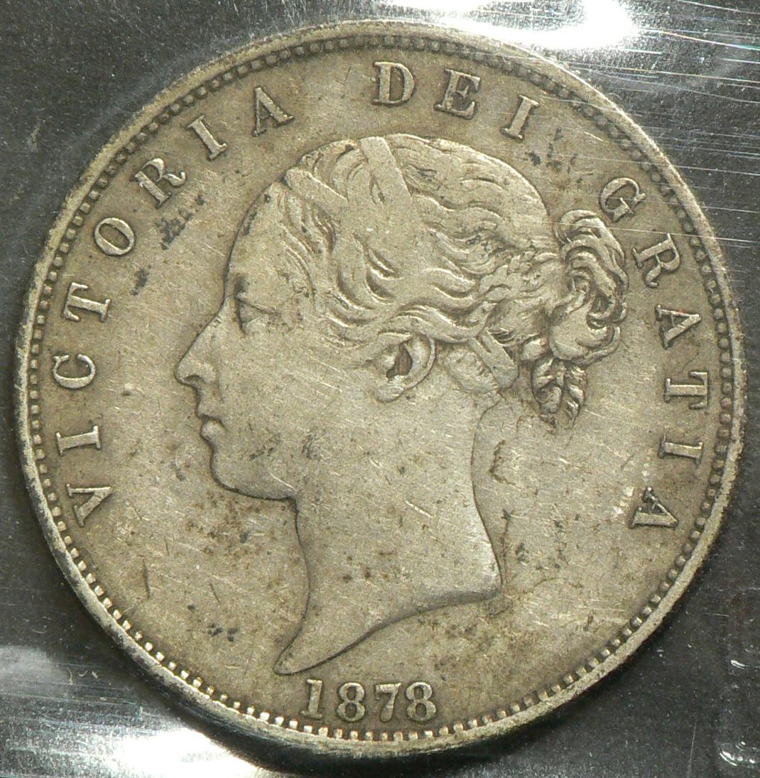 1878, graded CCCS F-15, Great Britain 1/2 crown.