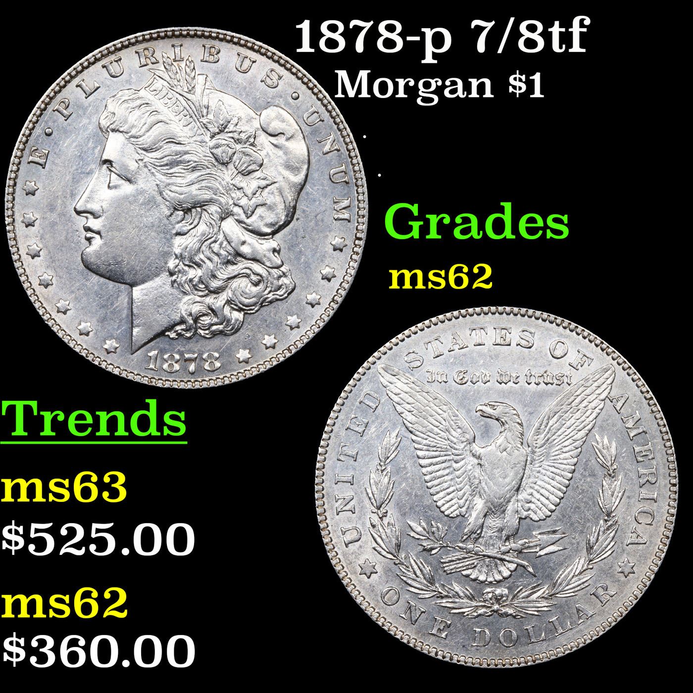 1878-p 7/8tf Morgan Dollar $1 Grades Select Unc.