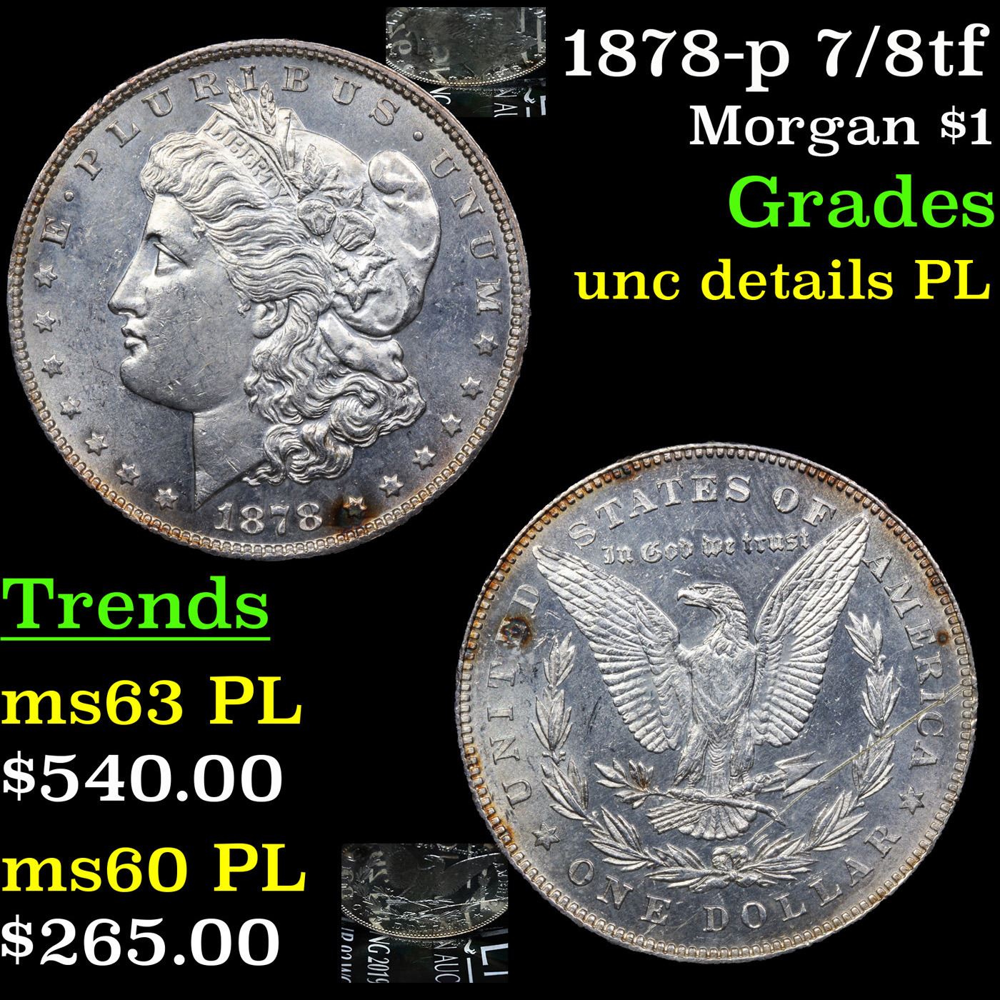 1878-p 7/8tf Morgan Dollar $1 Grades Unc Details PL. 0