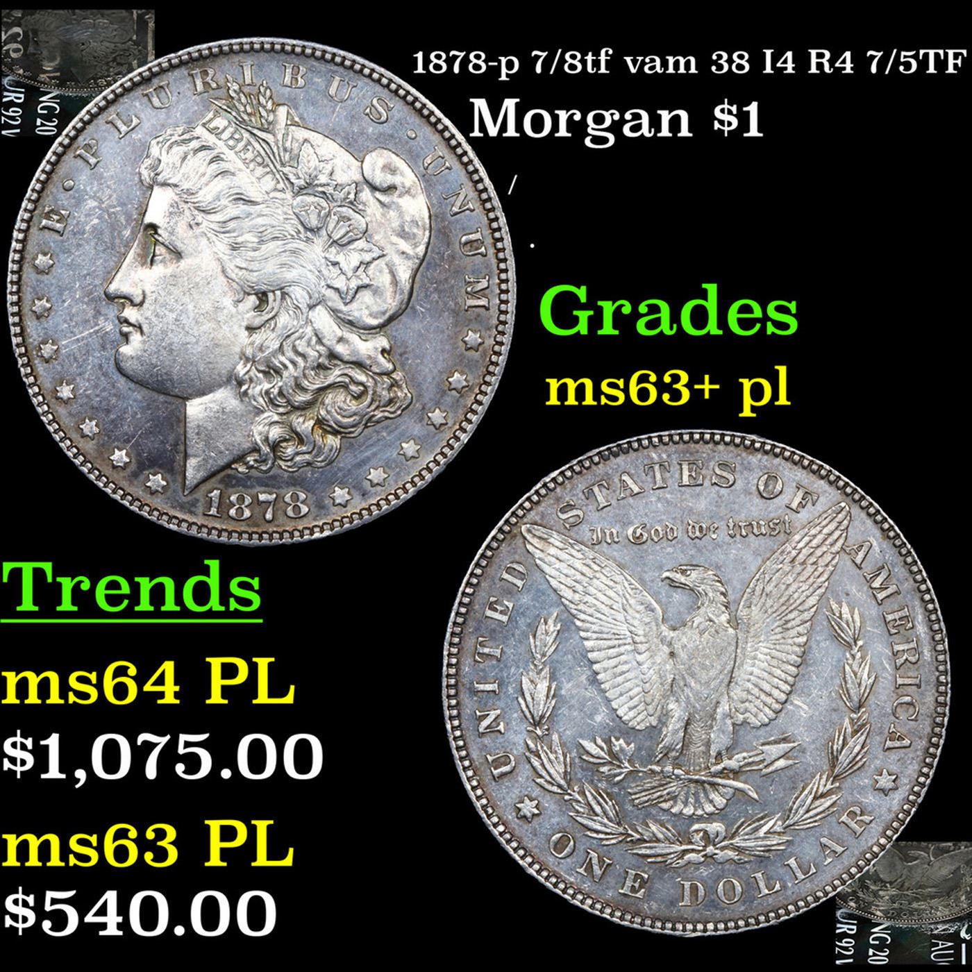 1878-p 7/8tf vam 38 I4 R4 7/5TF Morgan Dollar $1 Grades Select Unc+ PL.