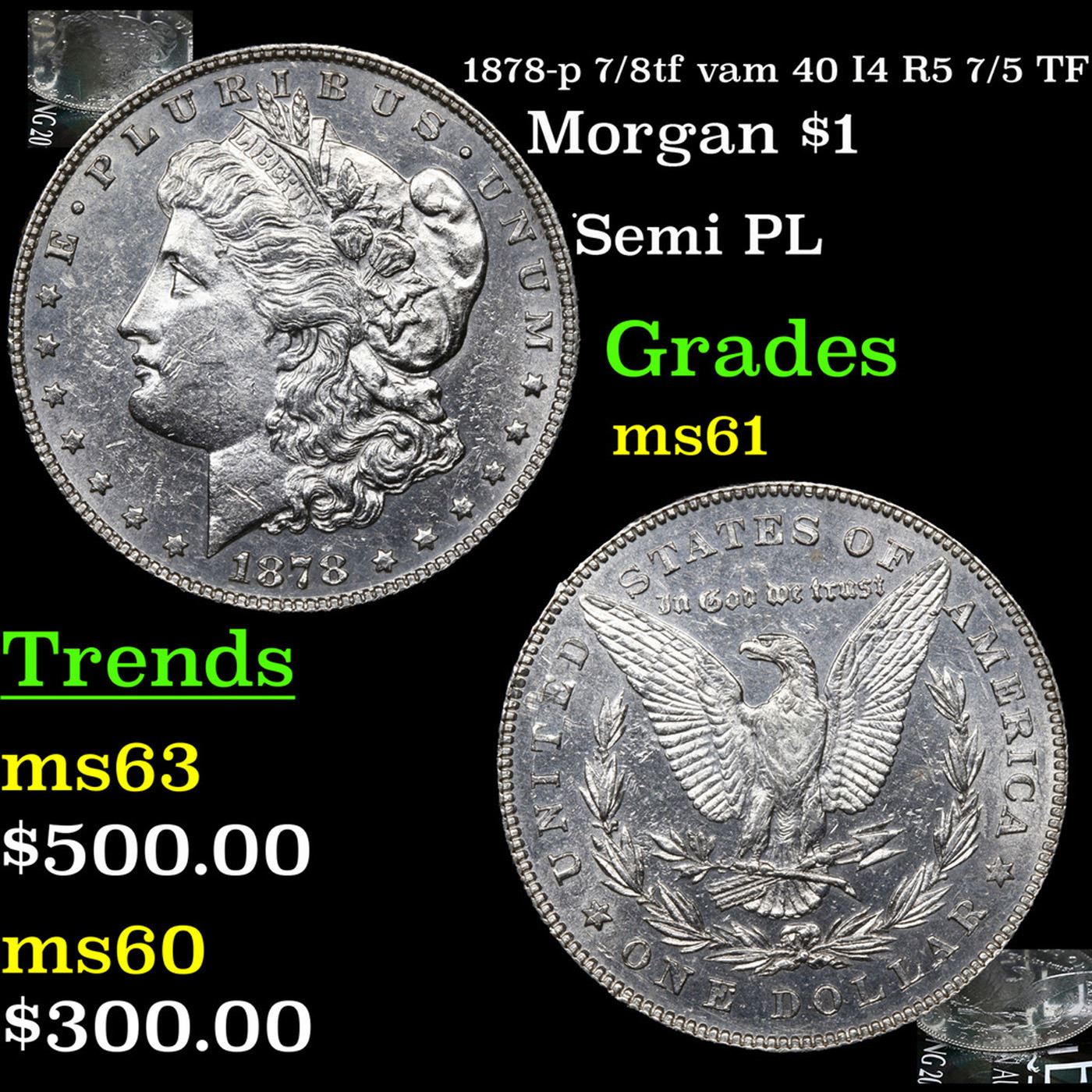1878-p 7/8tf vam 40 I4 R5 7/5 TF Morgan Dollar $1 Grades BU+.