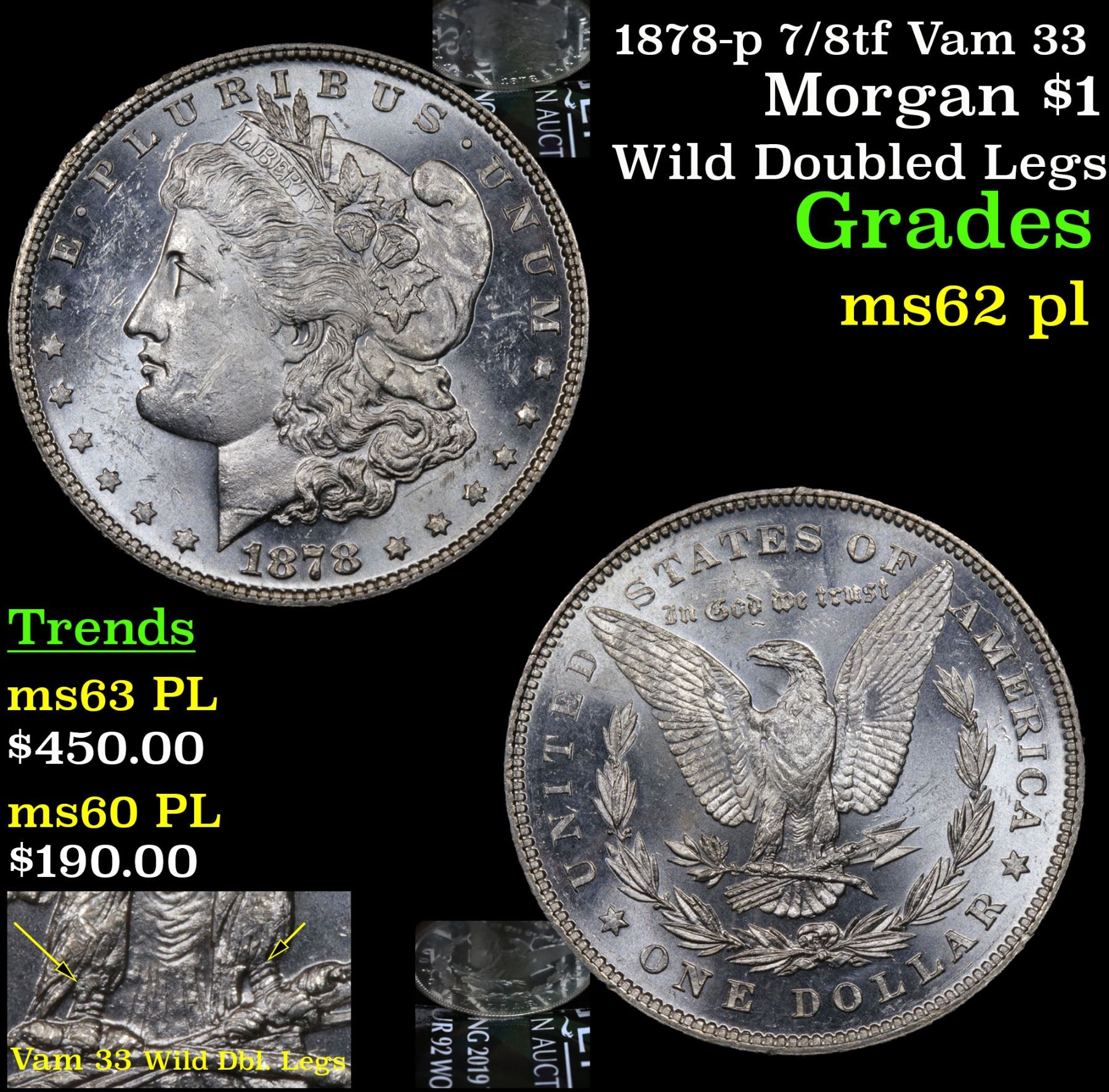 1878-p 7/8tf Vam 33 Morgan Dollar $1 Grades Select Unc PL.