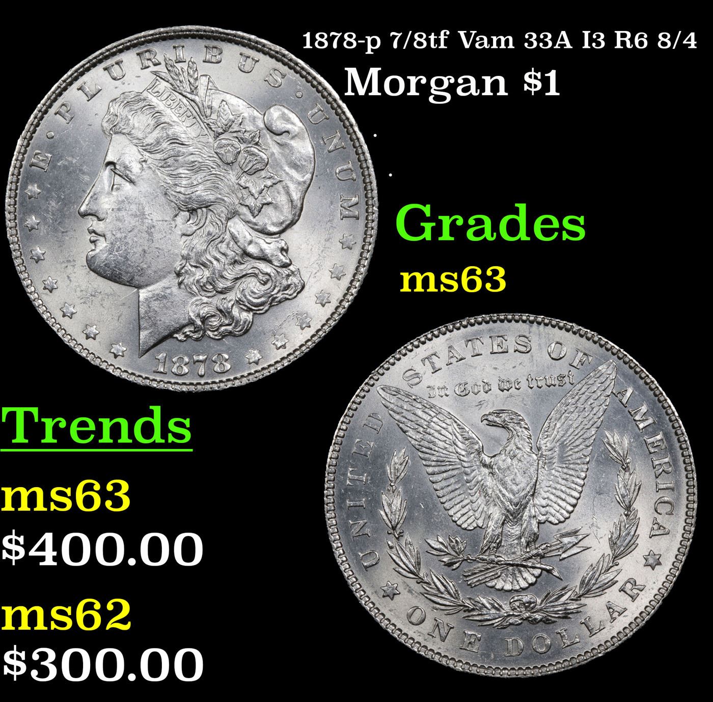 1878-p 7/8tf Vam 33A I3 R6 8/4 Morgan Dollar $1 Grades Select Unc.