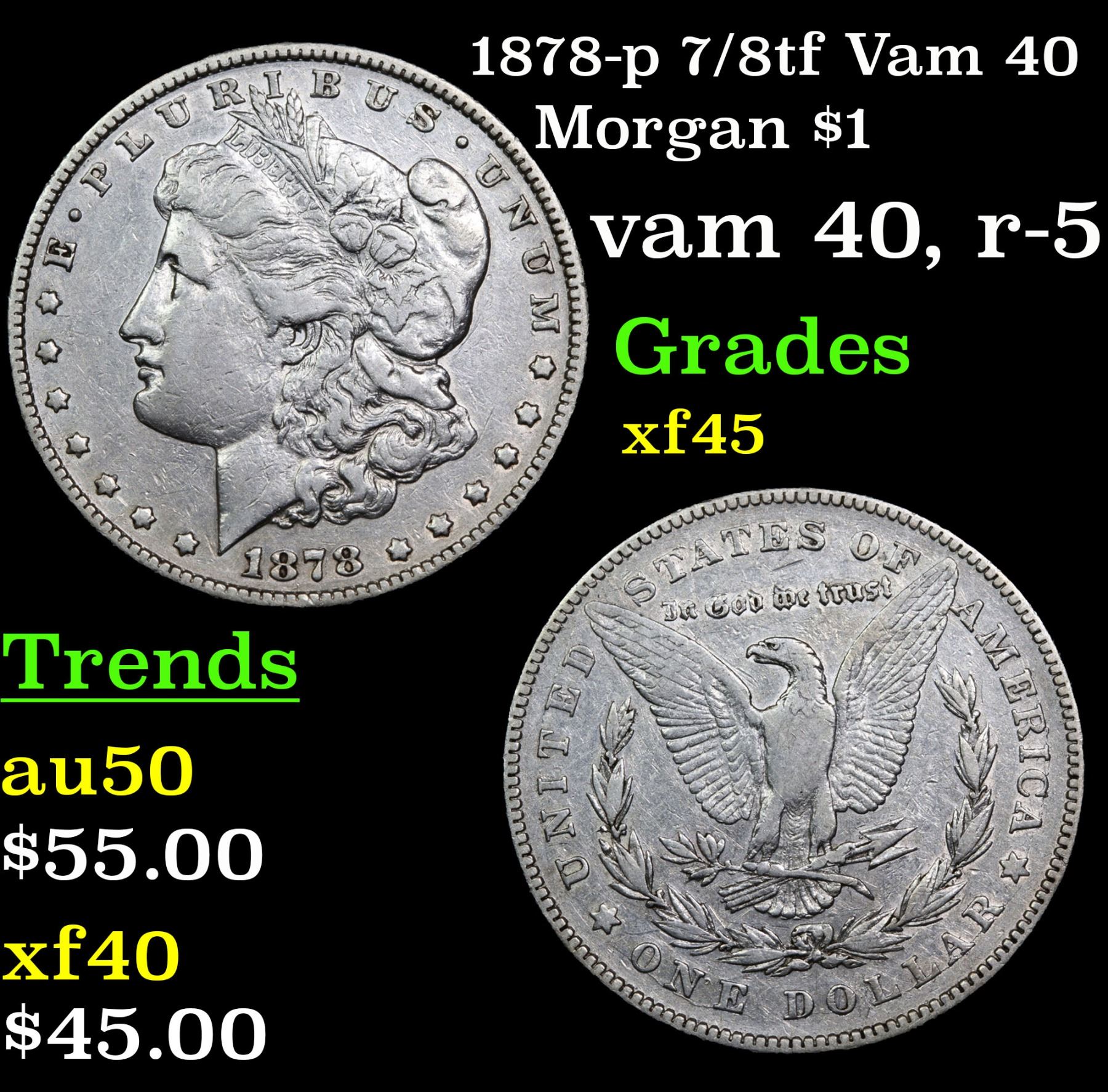 1878-p 7/8tf Vam 40 vam 40, r-5 . Morgan Dollar $1 Grades xf+.