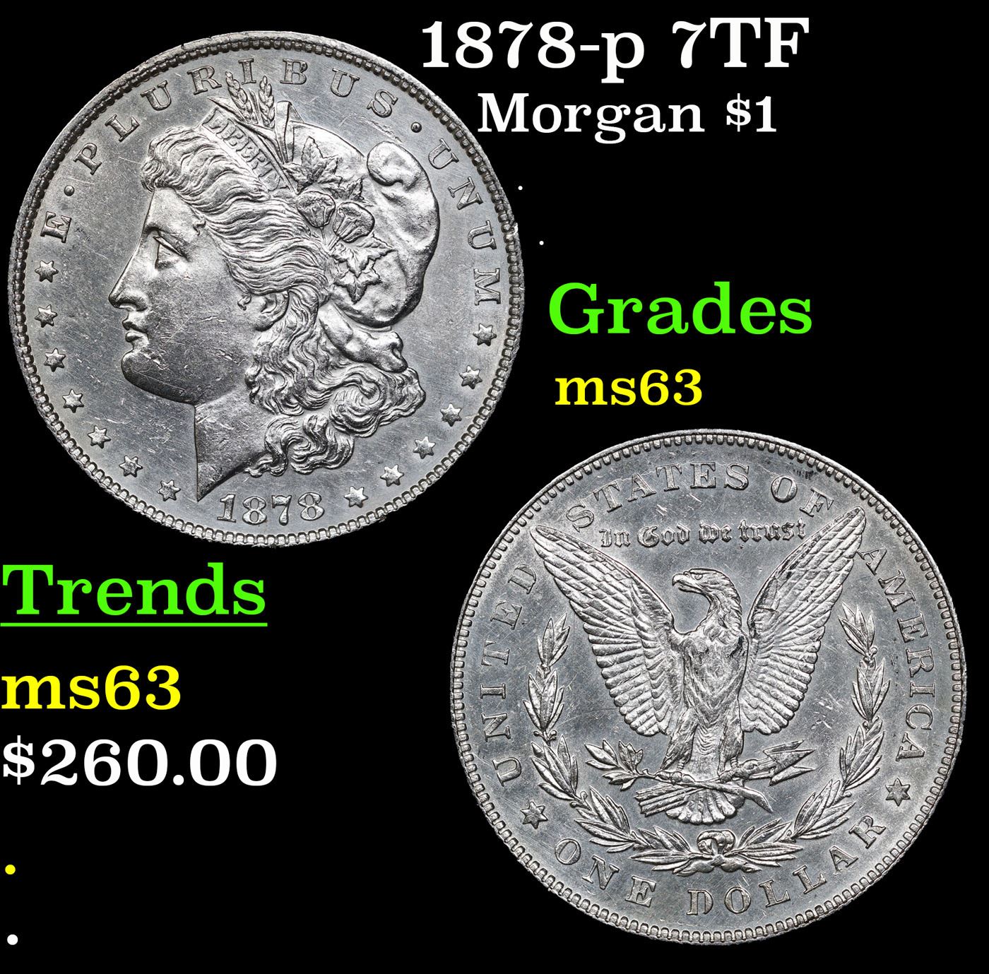 1878-p 7TF Morgan Dollar $1 Grades Select Unc.