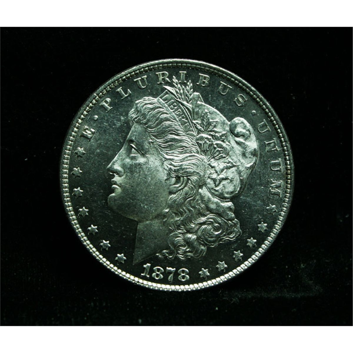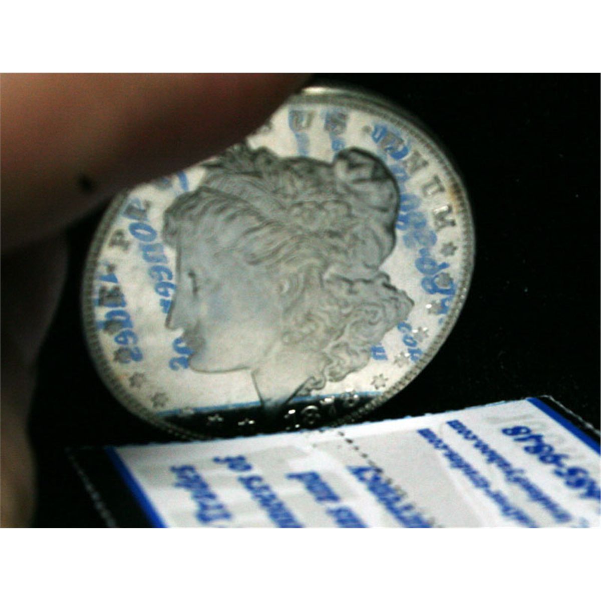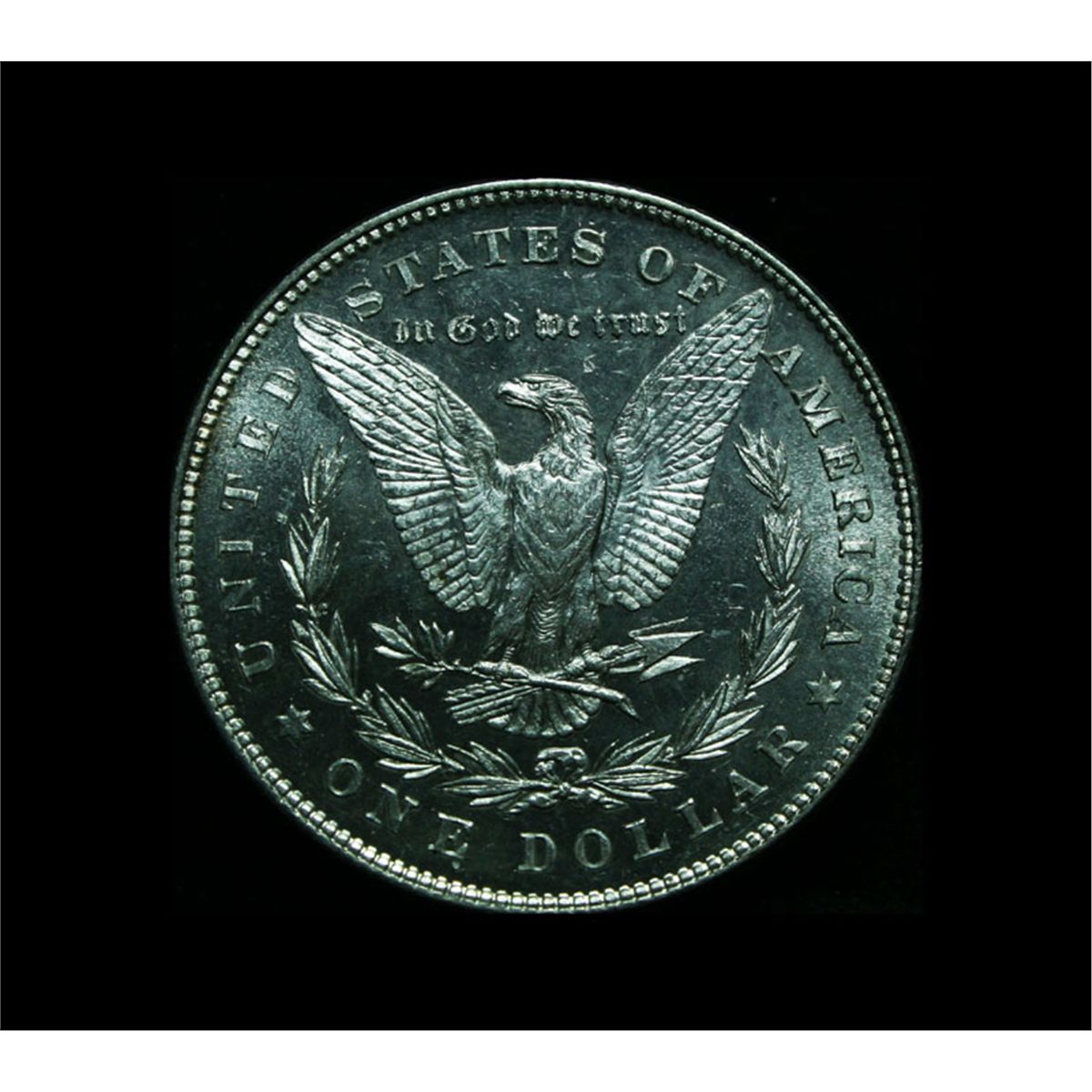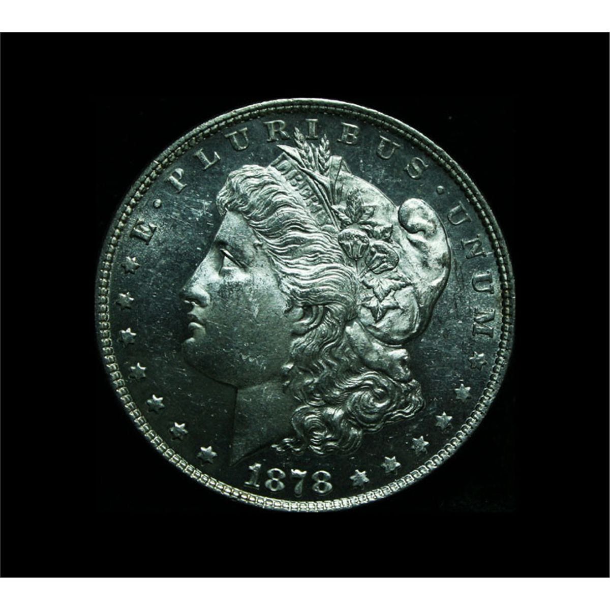 A nice white example of the first year of the Morgan dollar series. Frosted devices and deep mirrored fields on this deep mirrored proof like example. It is also the VAM 81 having a "polished ear and a doubled 1,8,7 in date among other features". I will offer my personal buy back guarantee, that this coin is all original and will not come back Ungradeable by any major grading service. The Wholesale Greysheet lists ms64 dmpl at $1825+. Estimated Value $2000