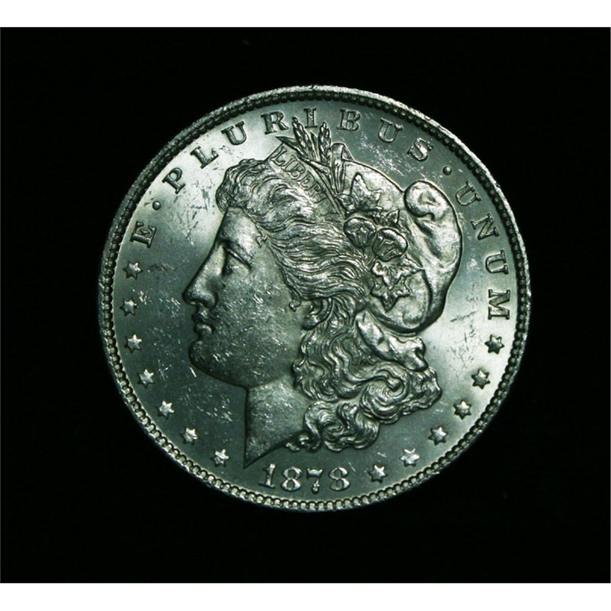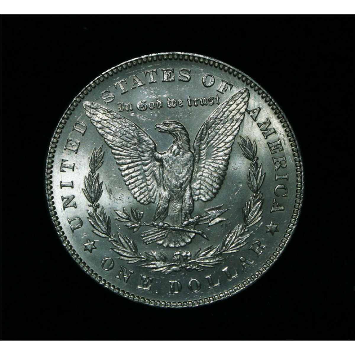 A nice white example of the first year of the Morgan dollar series. The coin is also VAM 131 C1, with a Line thru the 'IL'. Coin World's Coin Values lists ms64 at $275. PCGS's Price Guide lists ms64 at $270. The Wholesale Greysheet lists ms64 at $200. Estimated Value $225.