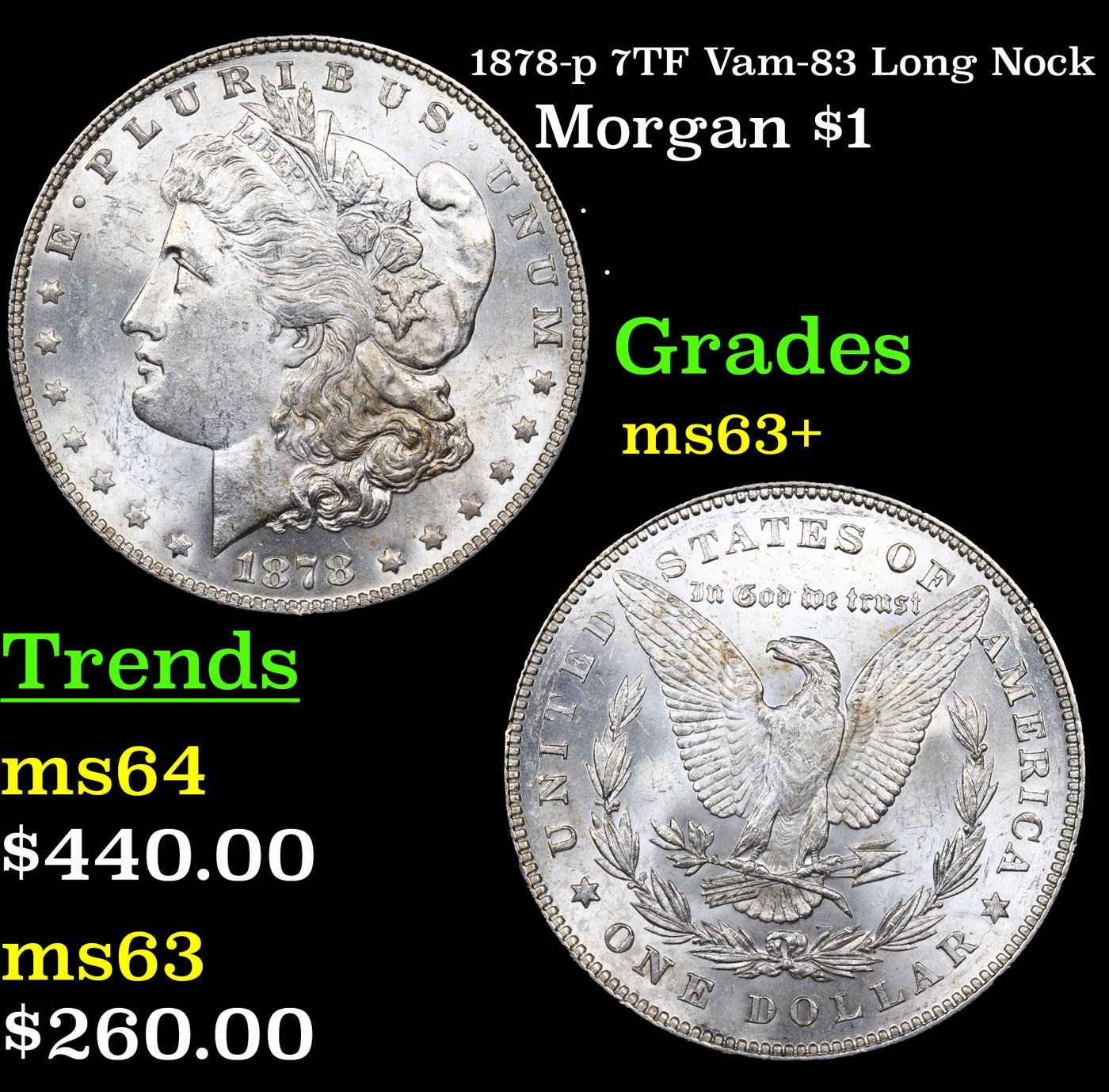 1878-p 7TF Vam-83 Long Nock Morgan Dollar $1 Grades Select+ Unc.