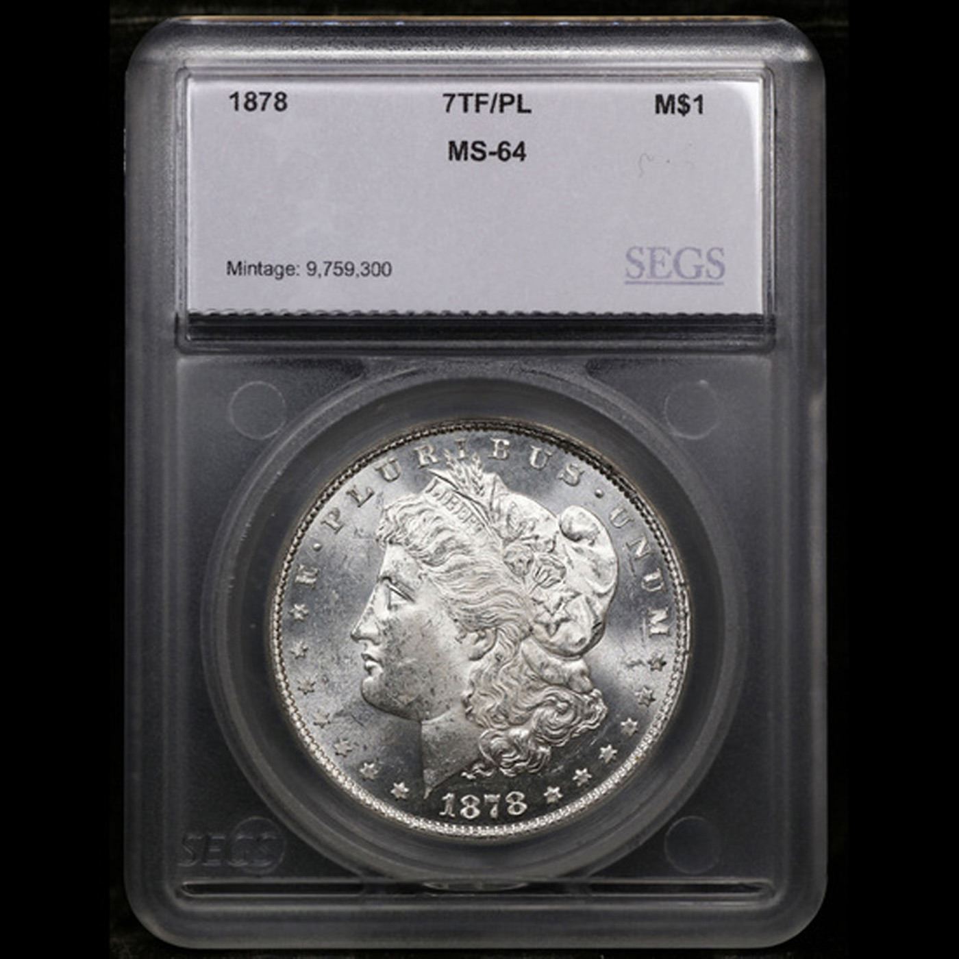1878-p 7tf Morgan Dollar $1 Graded ms64 pl By SEGS.