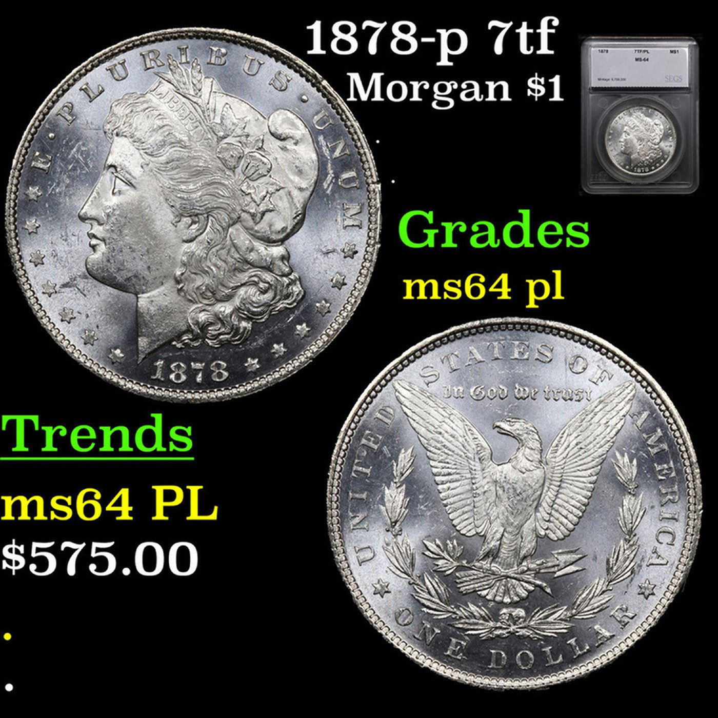 1878-p 7tf Morgan Dollar $1 Graded ms64 pl By SEGS.
