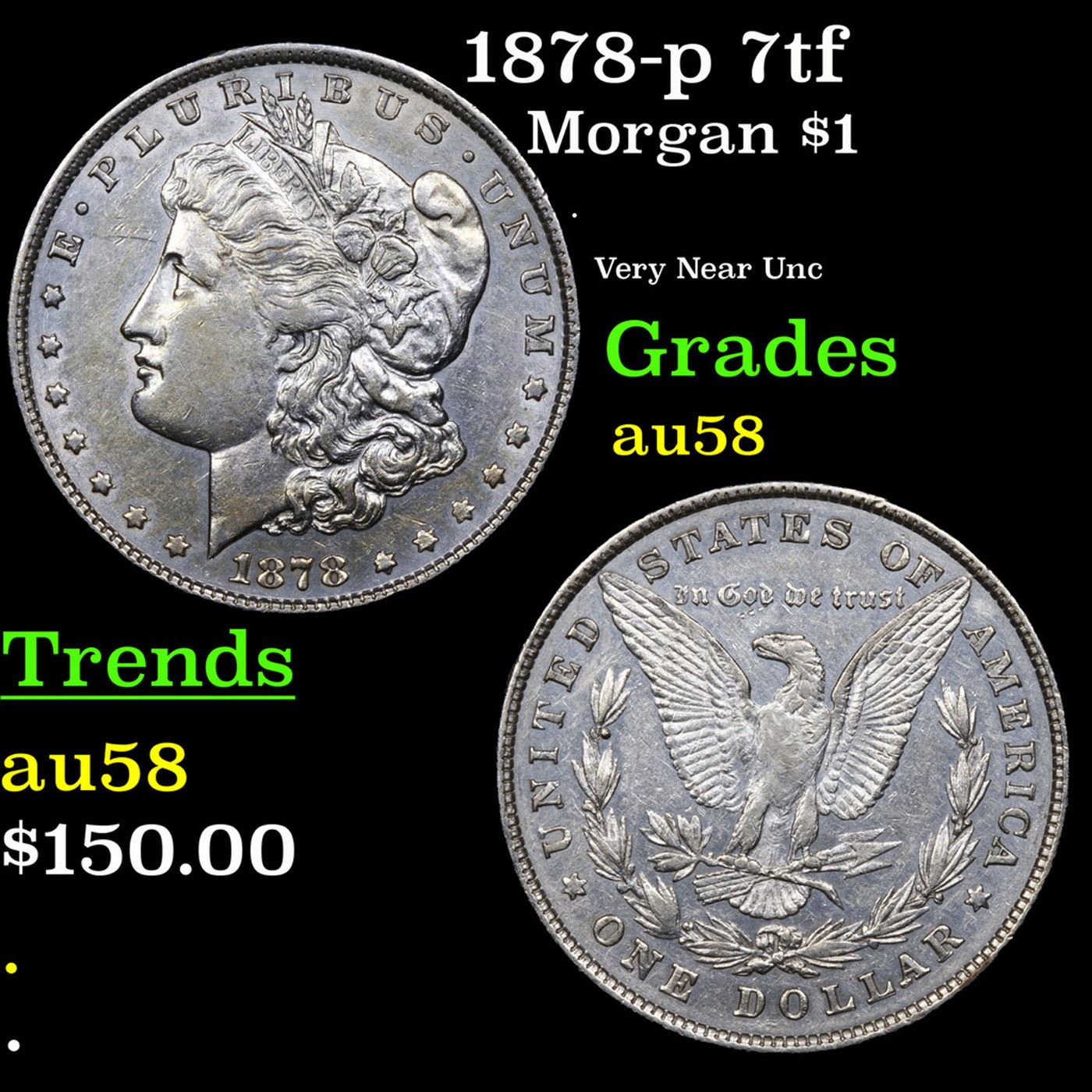 1878-p 7tf Morgan Dollar $1 Grades Choice AU/BU Slider.