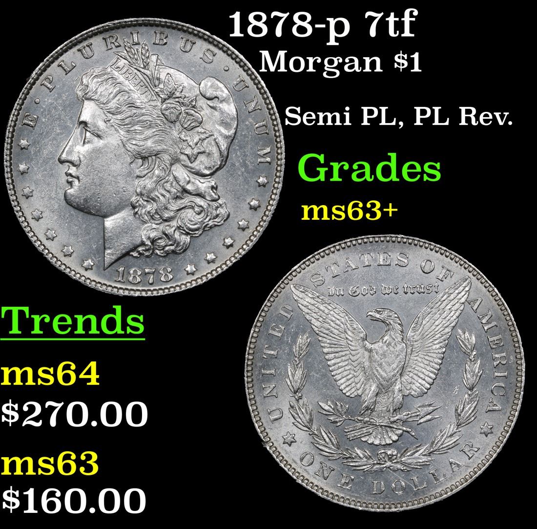 1878-p 7tf Semi PL, PL Rev. . Morgan Dollar $1 Grades Select+ Unc.