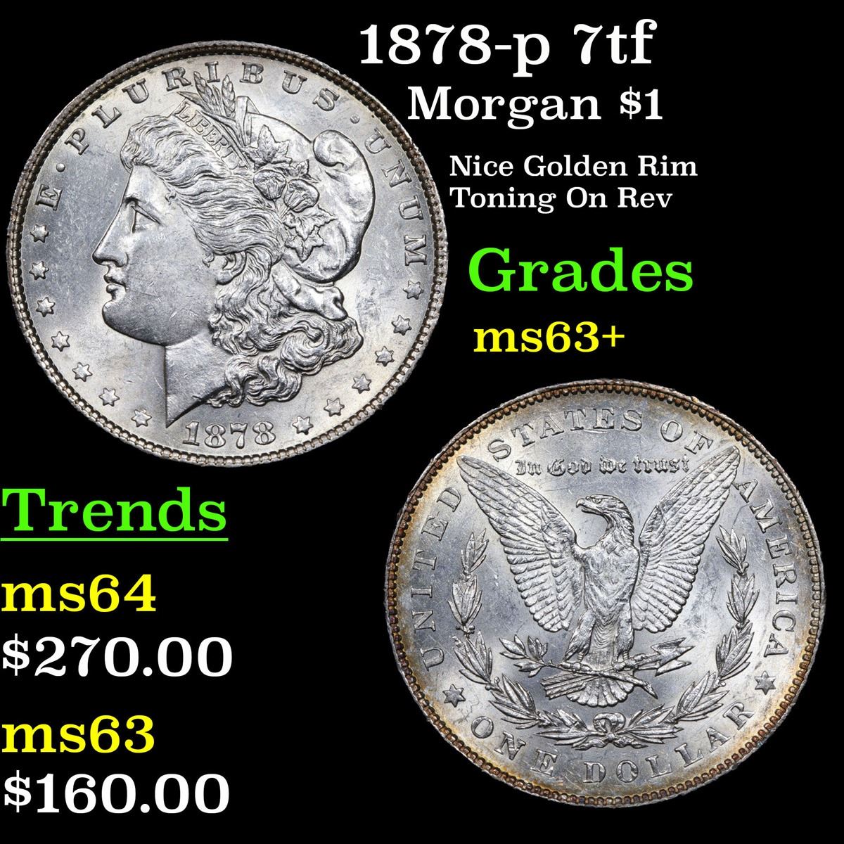 1878-p 7tf Nice Golden Rim Toning On Rev . Morgan Dollar $1 Grades Select+ Unc.