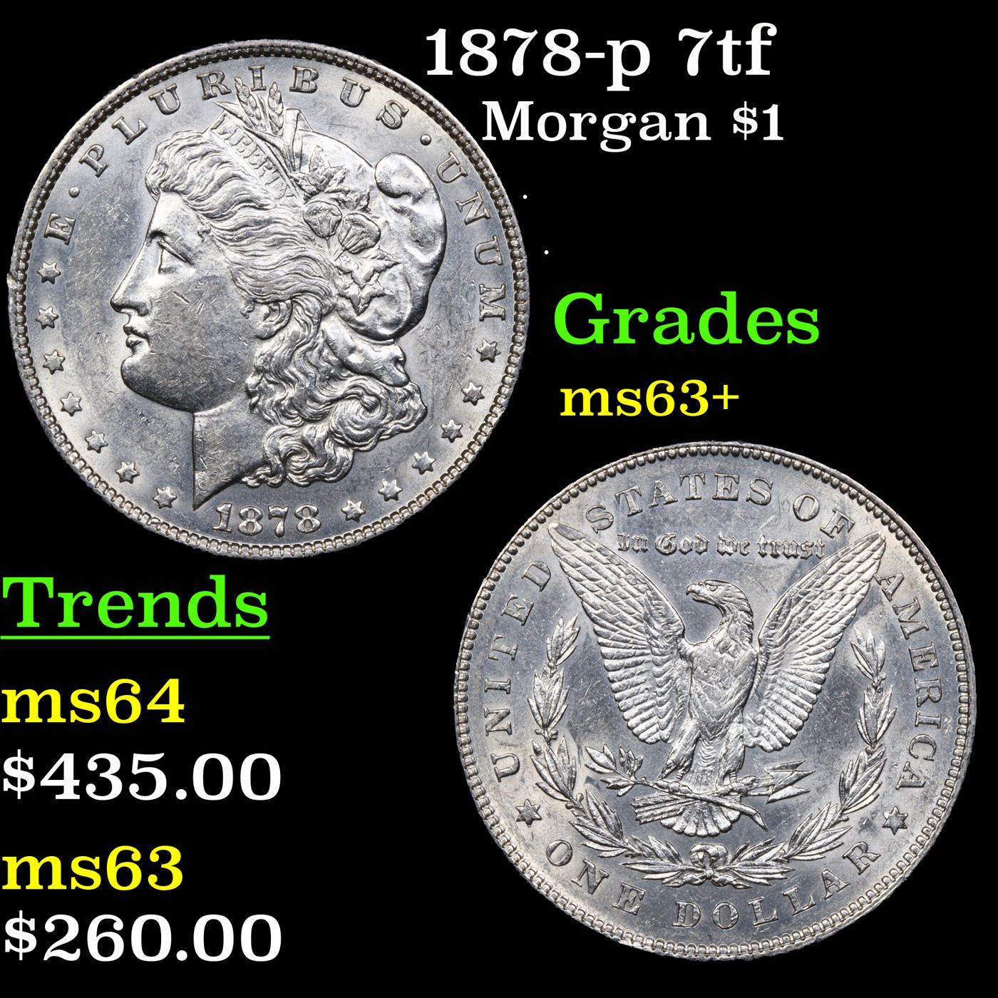 1878-p 7tf Morgan Dollar $1 Grades Select+ Unc.