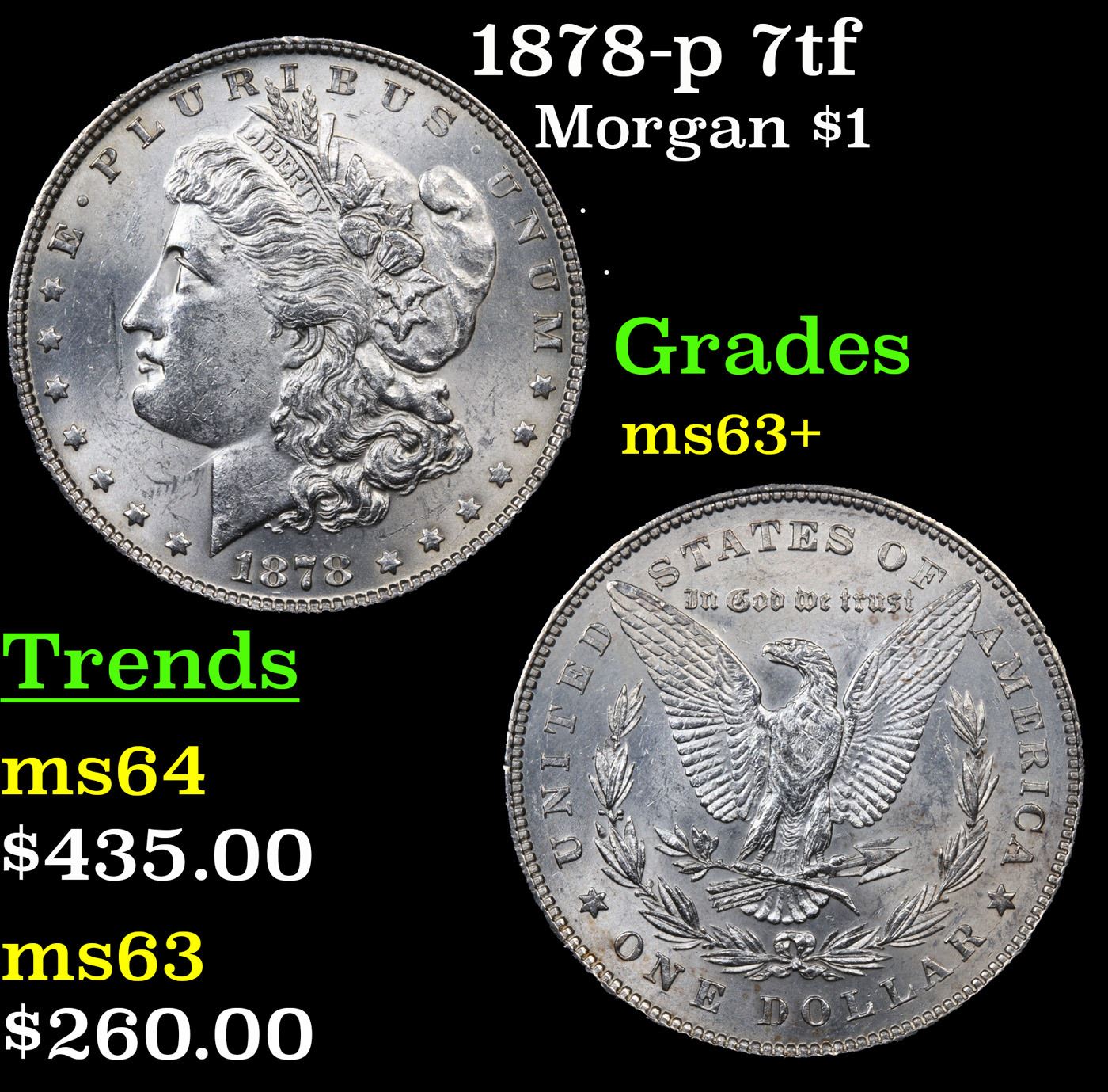 1878-p 7tf Morgan Dollar $1 Grades Select+ Unc.