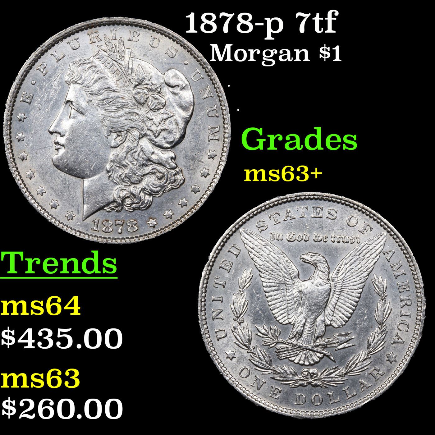 1878-p 7tf Morgan Dollar $1 Grades Select+ Unc.