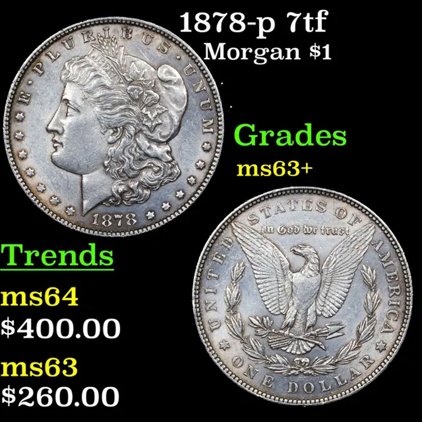 1878-p 7tf Morgan Dollar $1 Grades Select+ Unc.