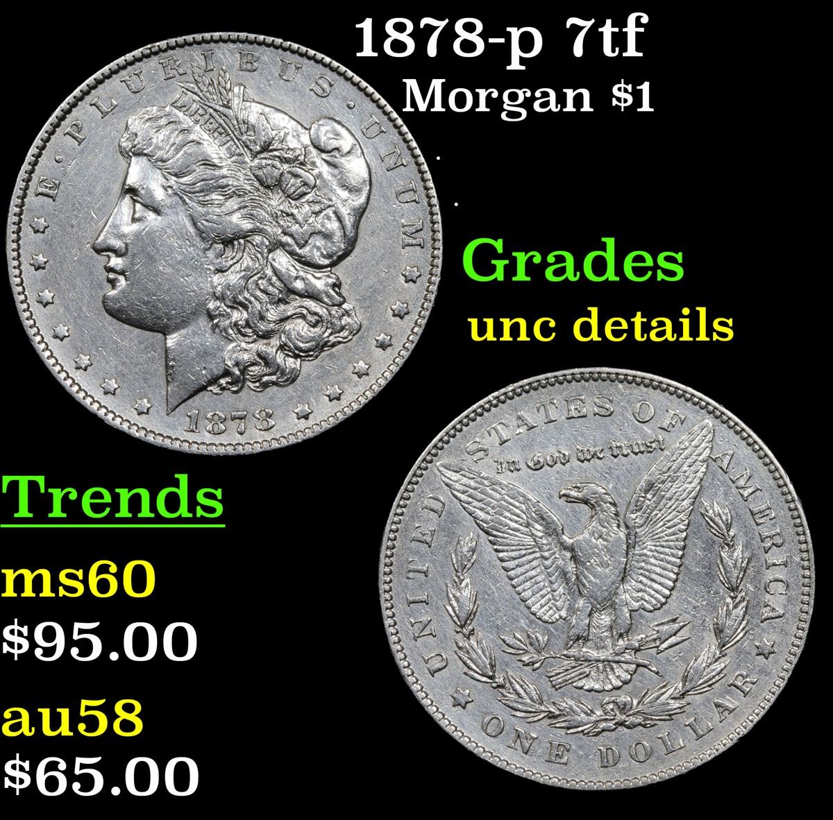 1878-p 7tf . . Morgan Dollar $1 Grades Unc Details.