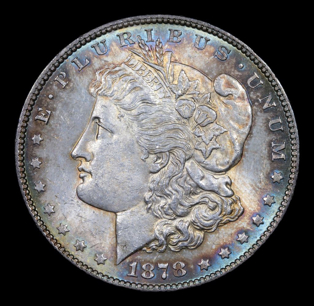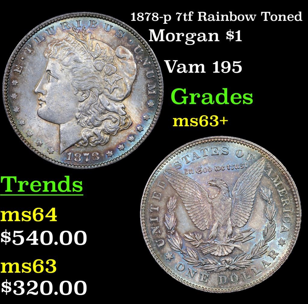 1878-p 7tf Rainbow Toned Vam 195 . Morgan Dollar $1 Grades Select+ Unc.