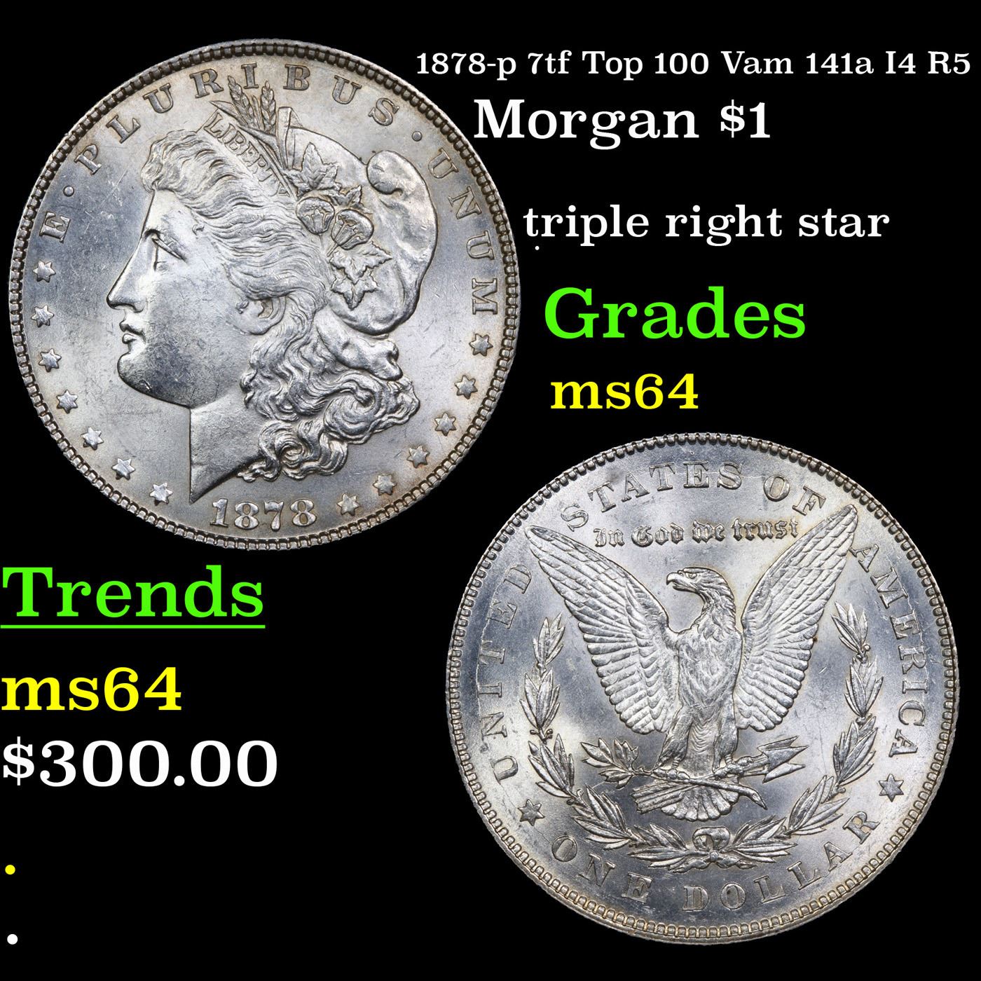 1878-p 7tf Top 100 Vam 141a I4 R5 Morgan Dollar $1 Grades Choice Unc.