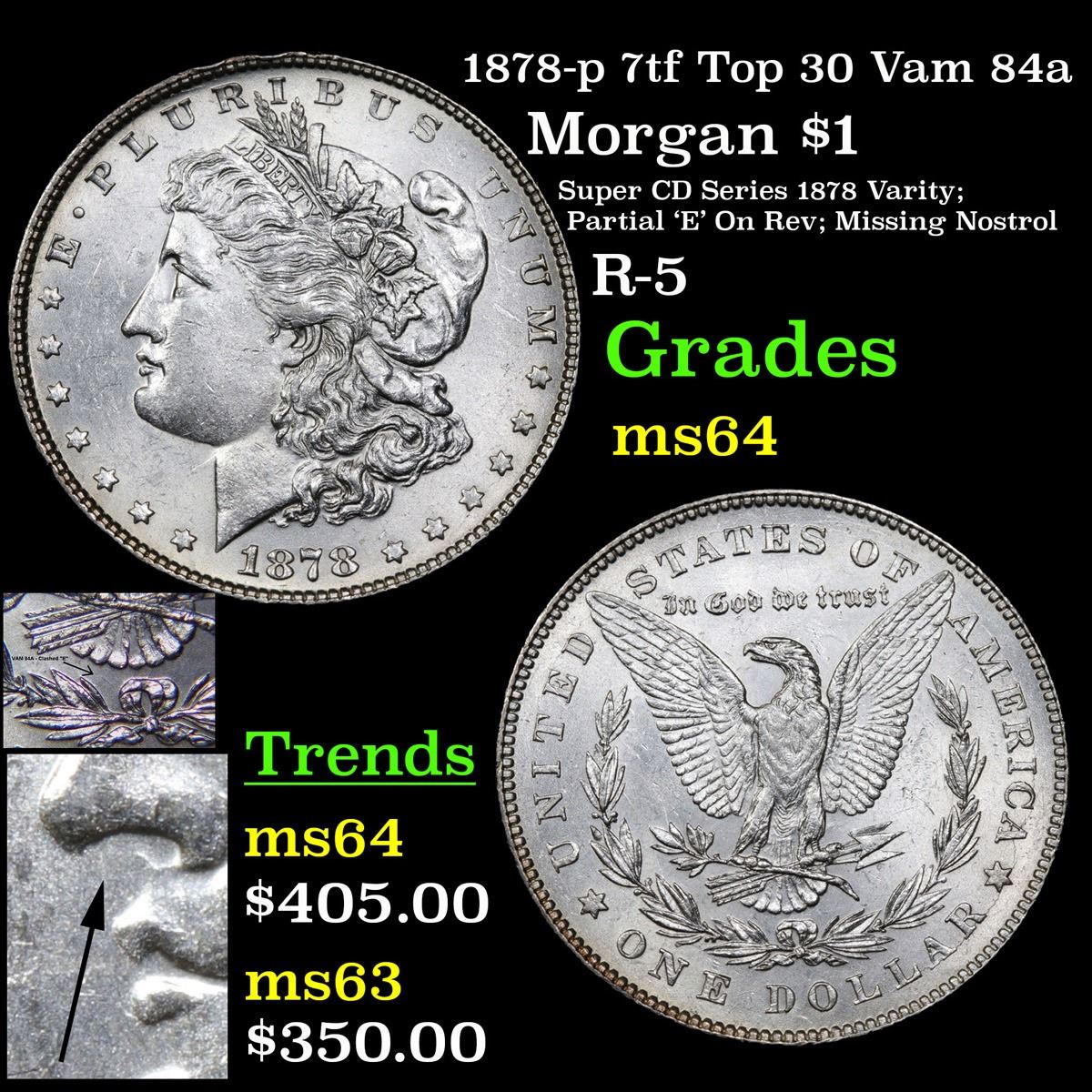 1878-p 7tf Top 30 Vam 84a Super CD Series 1878 Varity; Partial 'E' On Rev; Missing Nostrol R-5 Morgan Dollar $1 Grades Choice Unc. A Corey's Pick