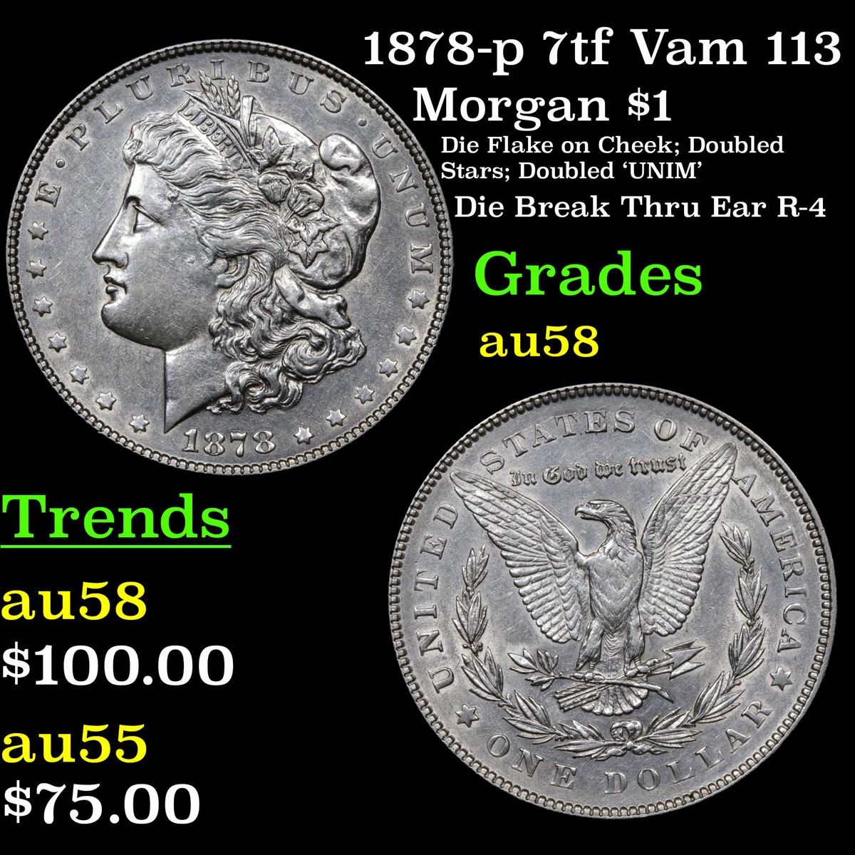 1878-p 7tf Vam 113 Morgan Dollar $1 Grades Choice AU/BU Slider.