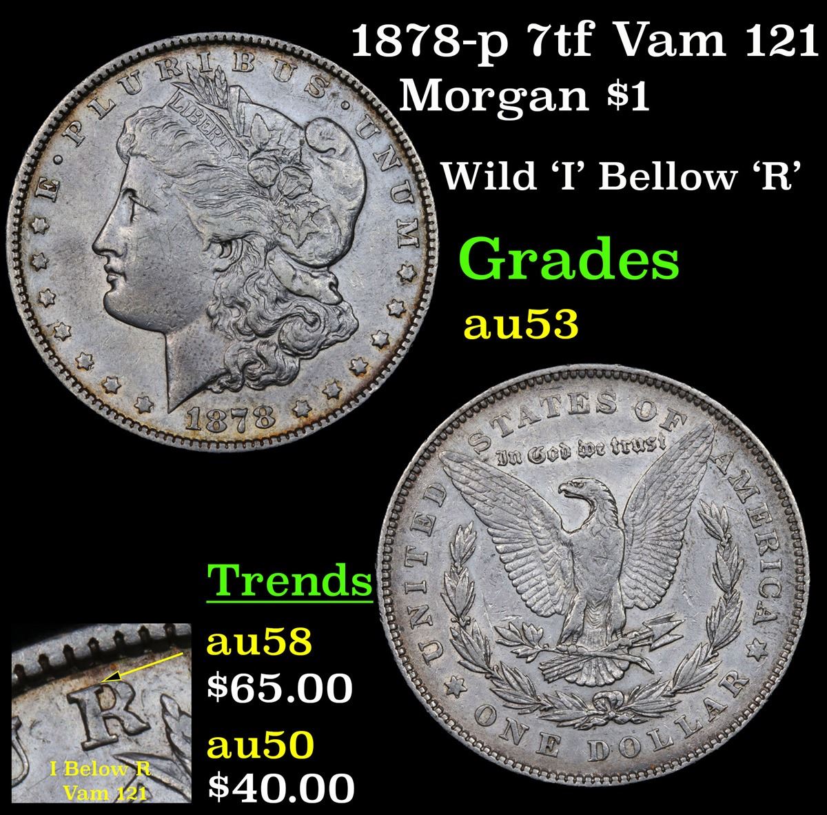 1878-p 7tf Vam 121 Morgan Dollar $1 Grades Select AU.