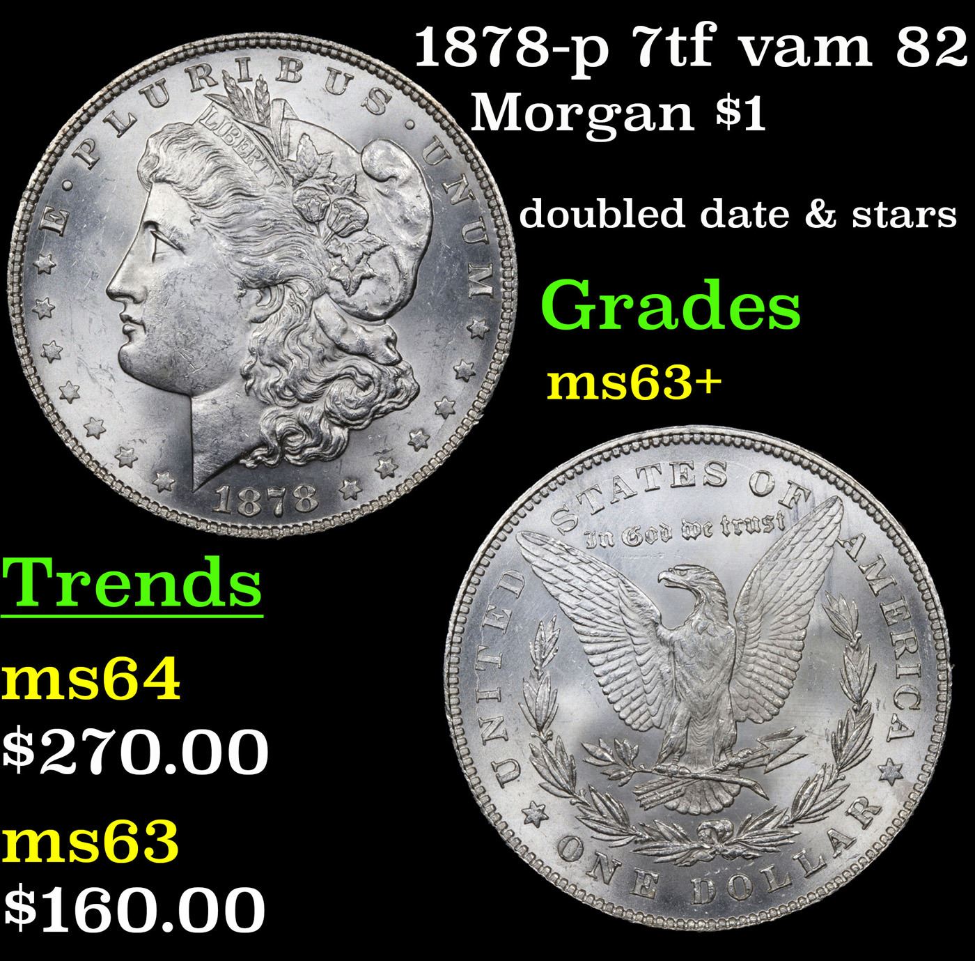 1878-p 7tf vam 82 Morgan Dollar $1 Grades Select+ Unc.