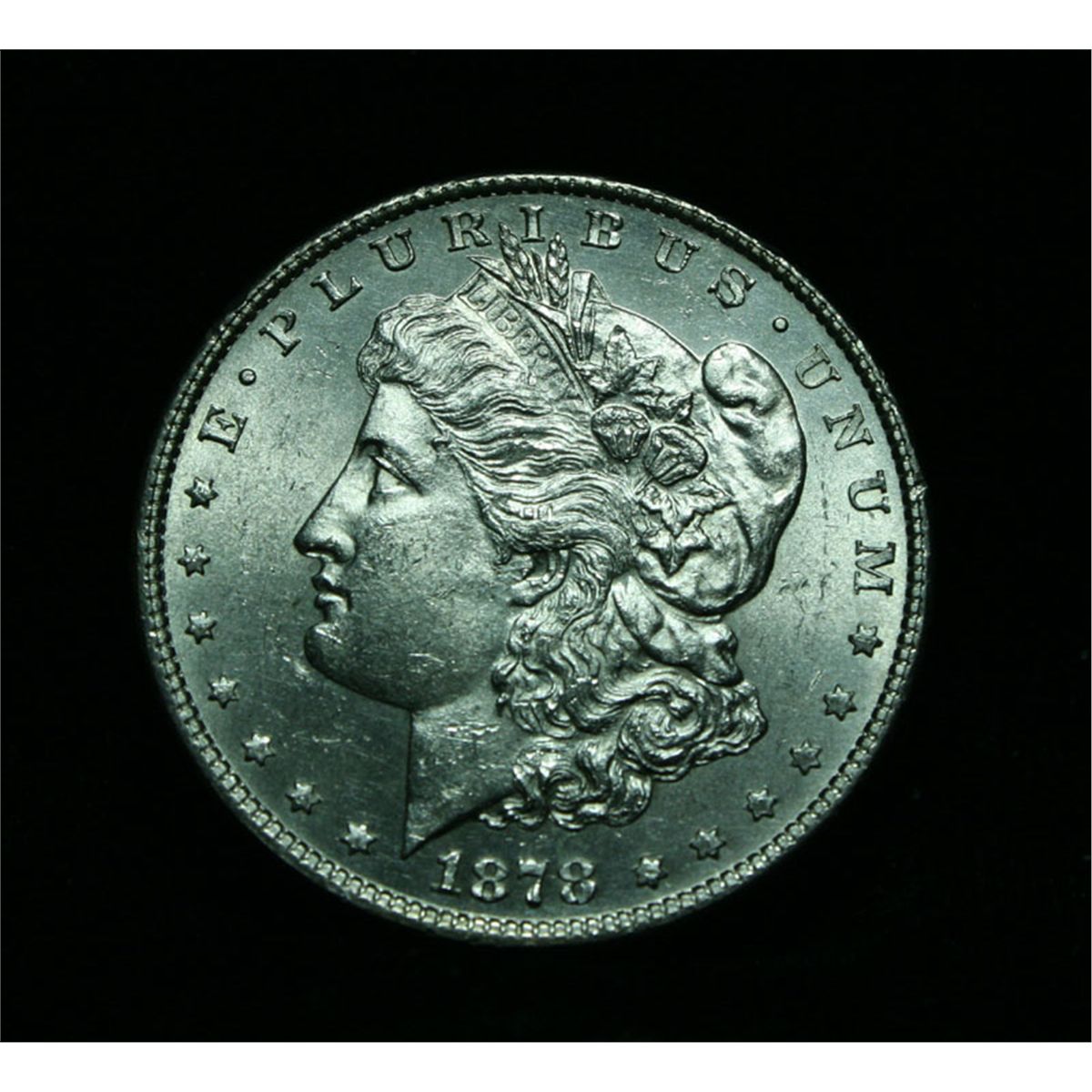 Beautiful All Original Example of the first Morgan Dollar the 8 Tail Feather Reverse. Strong luster and great strike. This is the VAM 16 with the wild tripled stars. A great variety of the first Morgan dollar. The clashed Die variety with the Alligator Eye and the Wild Doubled Reverse. Coin World's Coin Values lists ms64 at $500 and The Wholesale Greysheet lists ms64 at $385+. Estimated Value $450