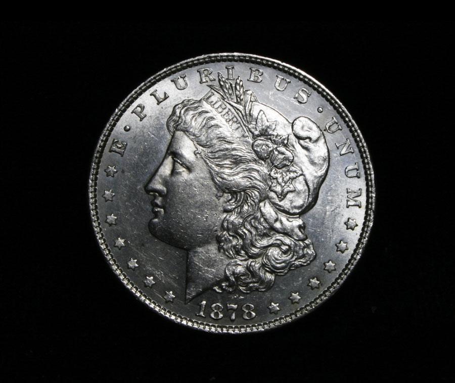 The 1st Morgan dollar, the 8TF 1878 Morgan. Coin World's Coin Values lists an ms63 as $250, and The Wholesale Greysheet Value of ms63 as $170+. Estimated Value $175