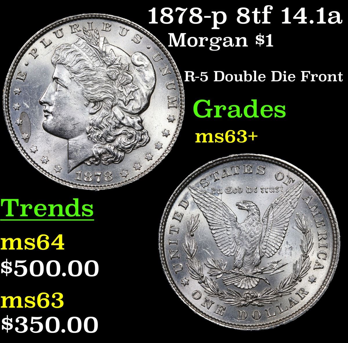 1878-p 8tf 14.1a R-5 Double Die Front . Morgan Dollar $1 Grades Select+ Unc.