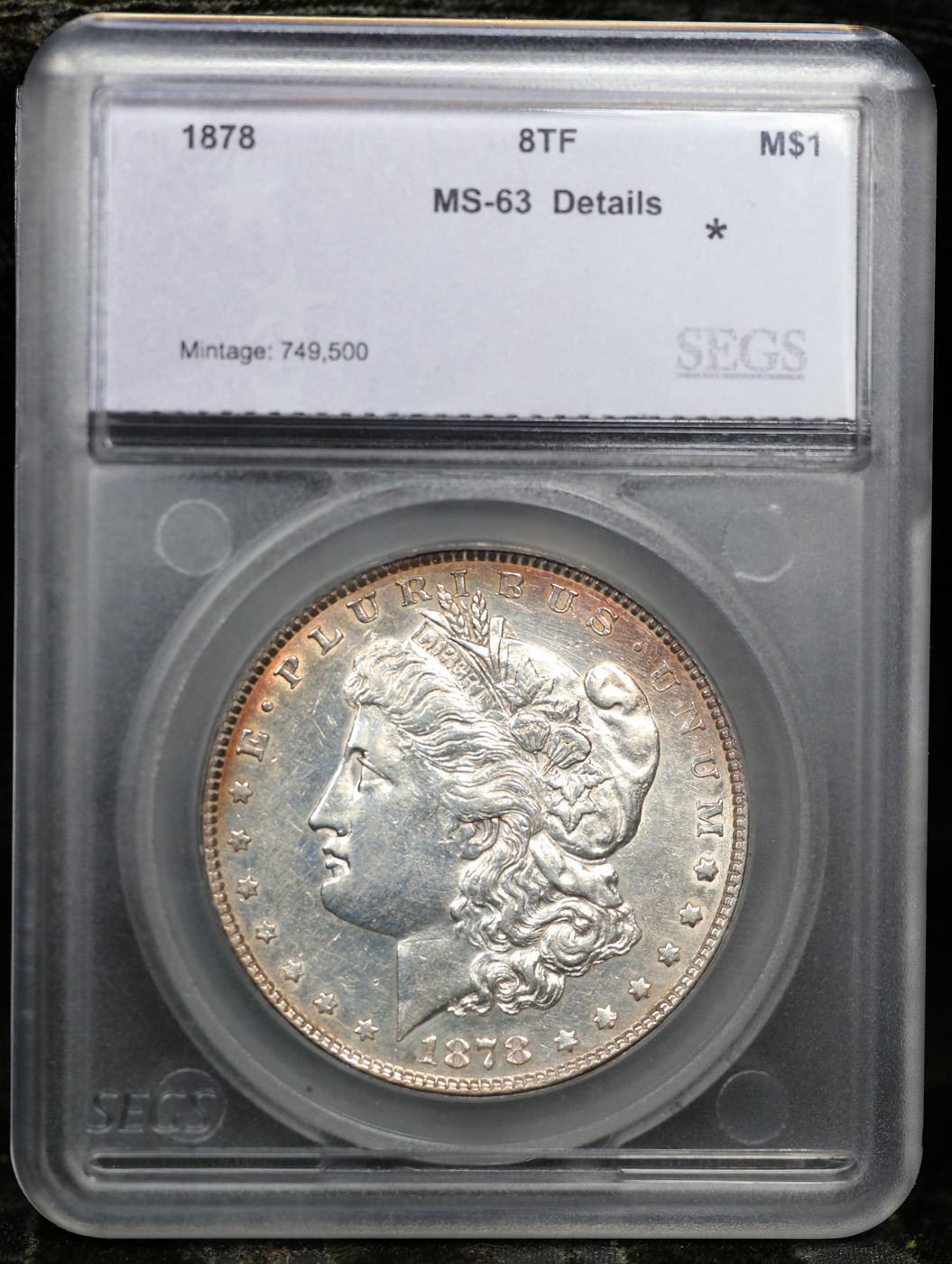 1878-p 8tf Morgan Dollar $1 Graded ms63 details By SEGS.