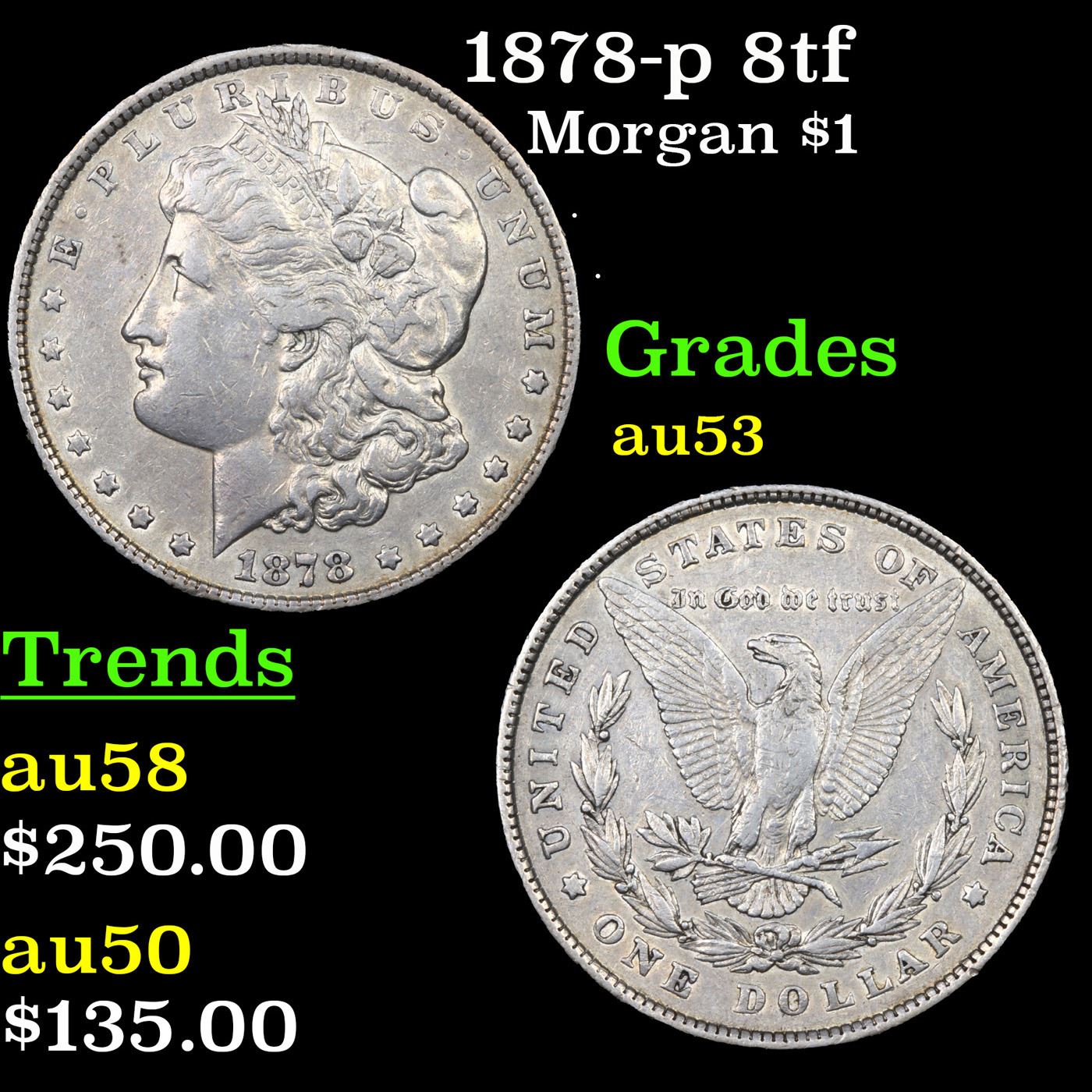 1878-p 8tf Morgan Dollar $1 Grades Select AU.